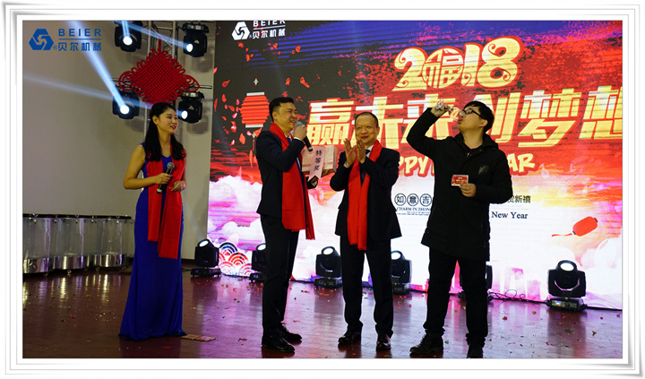 在表演開始前,董事長何德方致以新春致辭,他慷慨激昂地回顧了公司2017年取得的輝煌戰(zhàn)績一一感謝公司全體員工、各部門的辛勤付出,并展望2018年發(fā)展規(guī)劃,公司將繼續(xù)開拓創(chuàng)新,整合資源,所有貝爾人要攜起手來,為實(shí)現(xiàn)公司更高的目標(biāo)而奮斗!得到了全體員工的熱烈掌聲!在喜慶的祝酒音樂伴奏下,何董事長舉杯向所有同事和來賓祝酒,新春晚宴在一片熱鬧喜悅的氣氛中正式開始。員工代表清洗組:楊愛萍進(jìn)行了發(fā)言,她作為參與者,見證了貝爾機(jī)械二十年來的蓬勃發(fā)展,反映了貝爾自下而上的實(shí)干精神已經(jīng)成為貝爾的企業(yè)文化。