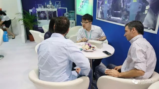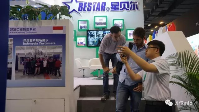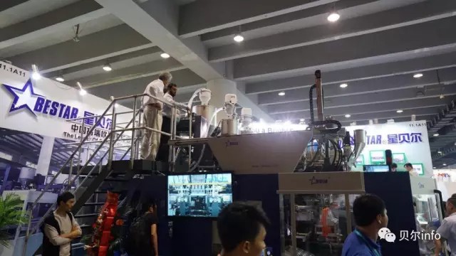 原來是展會上的展機正在試機,公司為了更好的讓客戶了解我們的產(chǎn)品,特地安排了展機的試機。此次演示的高速吹瓶機B20D-750, 2+2 雙工位,得到了客戶的高度關注,來自世界各國的客戶對星貝爾的技術實力給予了高度評價。